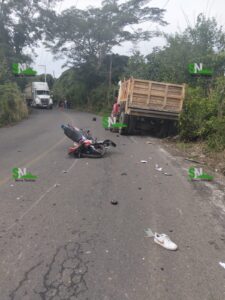 El fatidico accidente se suscito cuándo el motorista de nombre Daniel Velazco Martínez de 40 años, quien tuvo su domicilio en la localidad de Dolores S/n. De Santa María Chilchotla, se impacto contra un camion marca Ford tipo volteo y de color rojo, modelo 1993 con placas de circulación, perdió la vida, quedando tendido sobre la carpeta de rodamiento, mientras que la menor de edad Jimena Velazco Aparicio de 14 años, quien tiene su domicilio en la comunidad de El Zapotal resultó gravemente lesionada.